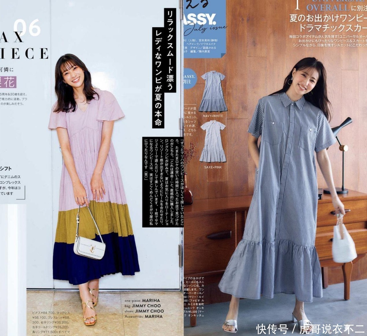 这两条连衣裙的外不雅有着明显的互异,撞色的类型,诳骗各式情绪碰撞出了明显的前锋感,竖条纹气象的衬衫连衣裙,则会使得女性的景象很有浮松感。