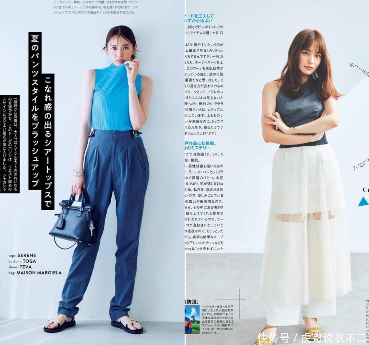 这两套穿搭中接受的单品,王人相比相宜泛泛生计的需求,不错利用无袖上衣,露动手臂,也不错借助带有透视性的玄色衬衫,雷同十分狭窄。