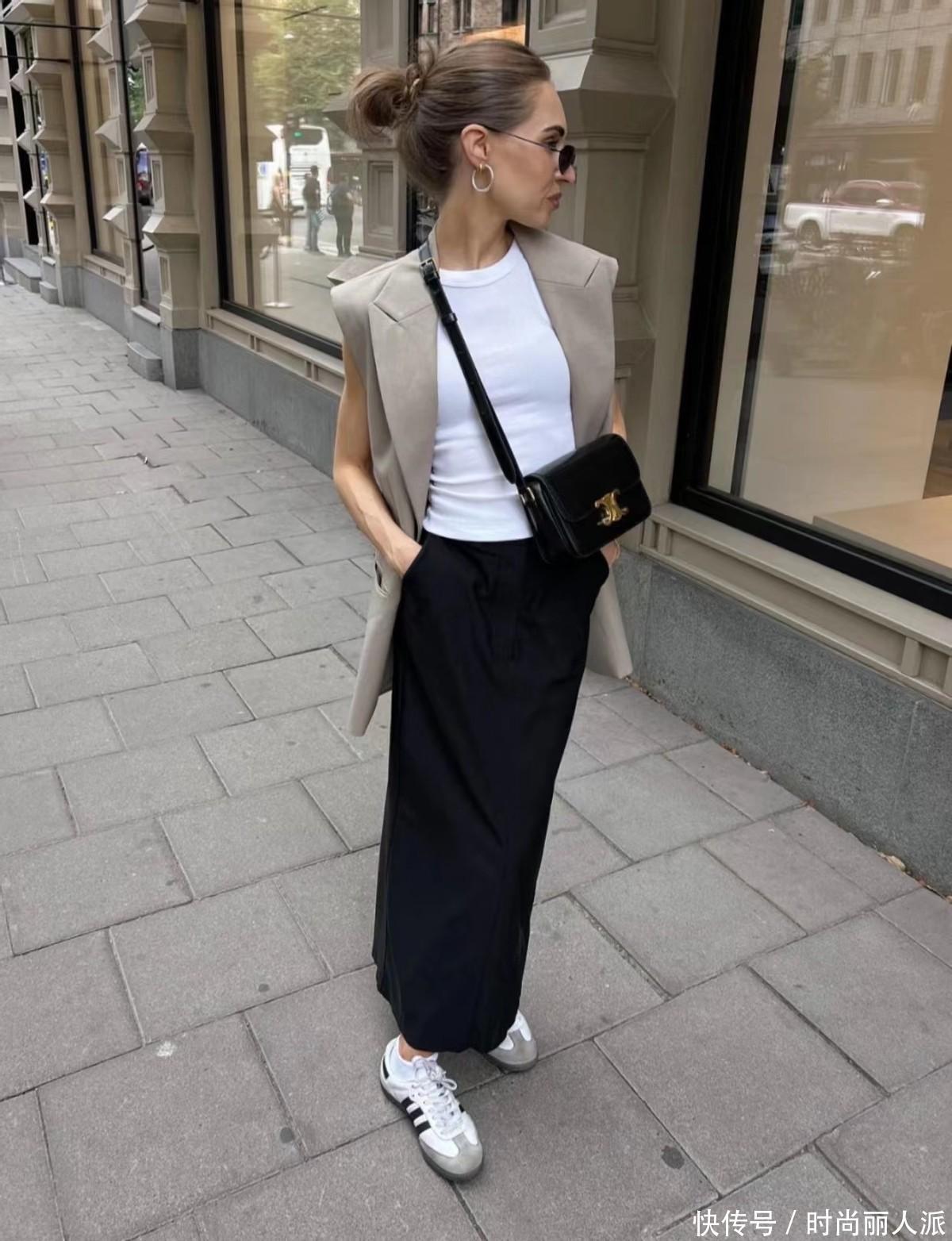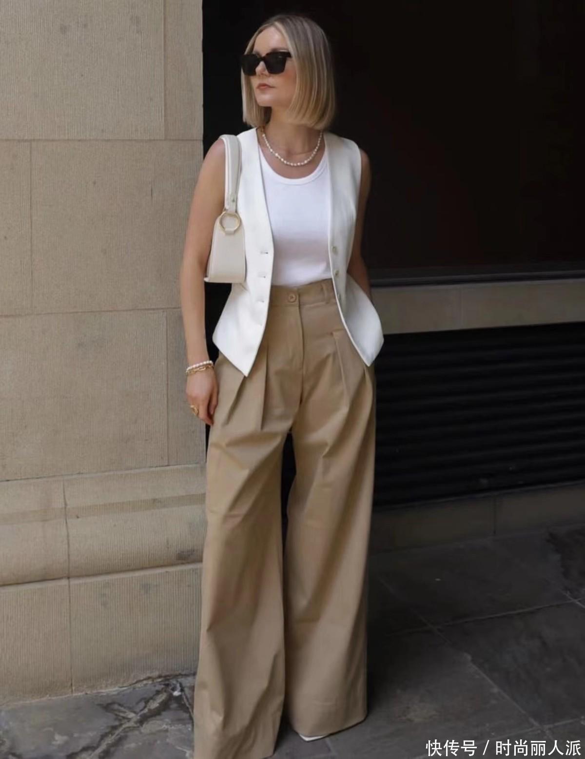 马甲获胜穿,莫得任何的内搭,咱们就要稳固裤装的选拔了……